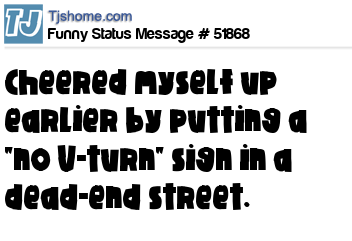 - # 52805 Cheered myself up earlier by putting a “no U-turn” sign in a dead-end street.