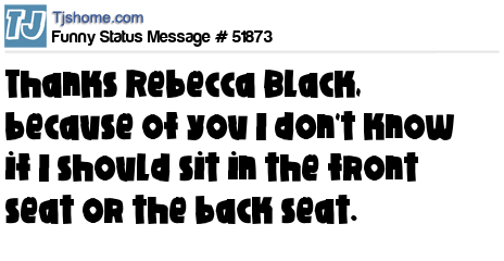 - # 82262 I'm just like Rebecca Black...it takes me until Friday to decide whether I'm sitting in the front or back seat.