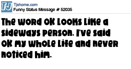 - # 63557 Someone just told me that thw word OK looks like a sideways person. I've said OK my whole life and never noticed him. What's up little guy?