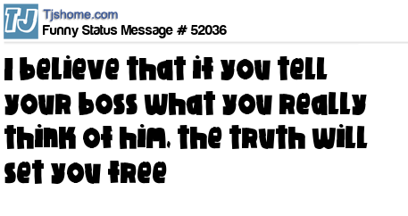 - # 24523 believes that if you tell your boss what you really think of him, the truth will set you free.