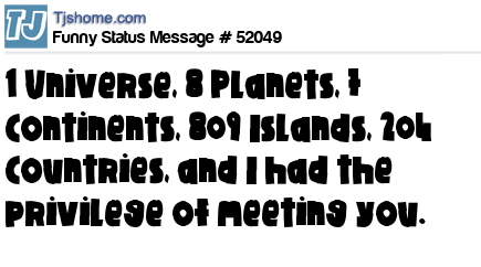 - # 82230 1 universe, 9 planets, 204 countries, 809 islands,7 seas, over 6 billion people, and I had the unfortunate luck of meeting you.