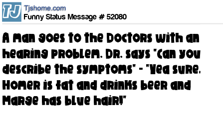 - # 191986 I went to the doctor with hearing problems. He asked “Can you describe the symptoms?” I said “Homer is a fat bald man and Marge has blue hair.”