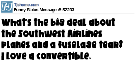 X  What's the big deal about the Southwest Airlines planes and a fuselage tear? I love a convertible.