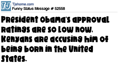 - # 53431 The President's approval ratings are so low that the people in Kenya are now accusing him of being born in the United States !!!