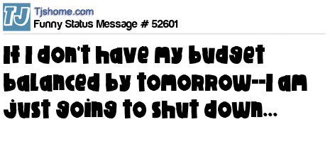 - # 52723 If I don't have my budget balanced by tomorrow, I am just going to shut down...