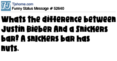 - # 118099 What is the difference between a Snickers and Justin Bieber? The Snickers has nuts....ZING...