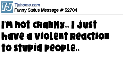 X says I'm not cranky.. I just have a violent reaction to stupid people..