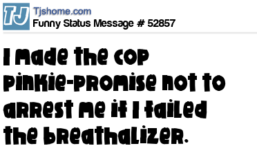 - # 52858 I made the cop pinkie-promise not to arrest me if I failed the breathalyzer.