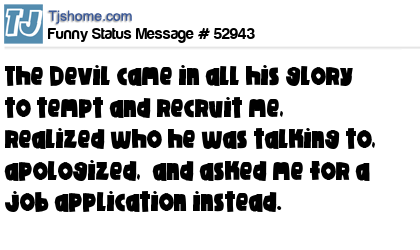 X says The Devil came in all his glory to tempt and recruit me, realized who he was talking to, apologized, and asked me for a job application instead.