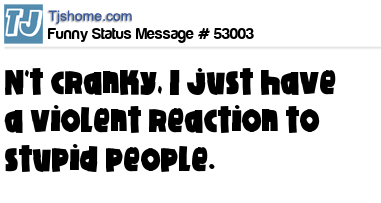 - # 52704 I'm not cranky.. I just have a violent reaction to stupid people..