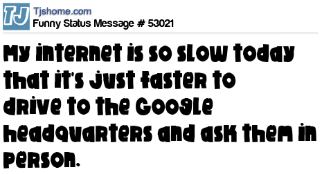 - # 48965 My internet is so slow, it's just faster to drive to the Google headquarters and ask them stuff in person.