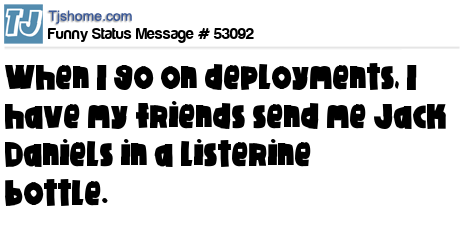 X When I go on deployments, I have my friends send me Jack Daniels in a Listerine bottle.