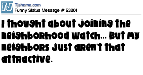 X I thought about joining the neighborhood watch... But my neighbors just aren't that attractive.