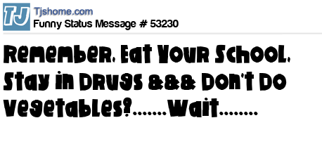 - # 75213 Remember: Eat your school, stay in drugs, and don't do vegetables, ok? :)