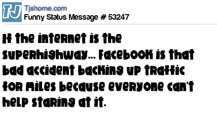 X If the internet is the superhighway... Facebook is that bad accident backing up traffic for miles because everyone can't help staring at it.