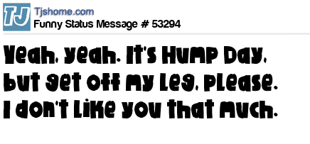 X is Yeah, yeah. It's Hump Day, but get off my leg, please. I don't like you that much.