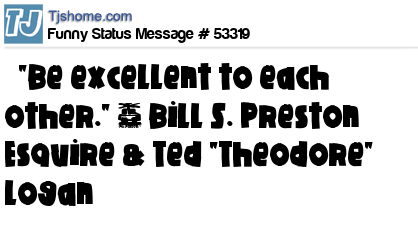 X is "Be excellent to each other." ~ Bill S. Preston Esquire & Ted "Theodore" Logan