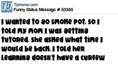 X i wanted to go smoke pot, so I told my mom I was getting tutored. she asked what time I would be back, I told her learning doesn't have a curfew