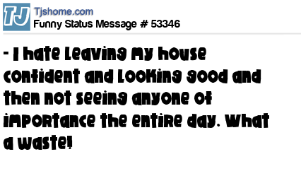 - # 21887 hates leaving my house confident and looking good and then not seeing anyone of importance the entire day. What a waste.