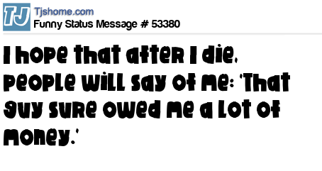 - # 8066 hopes that after I die, people will say of me: "Man... that guy sure owed me a lot of money."