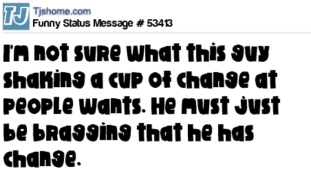 X I'm not sure what this guy shaking a cup of change at people wants. He must just be bragging that he has change.