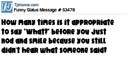 - # 56454 wondering how many times is it appropriate to say "What?" before you just nod and smile because you still didn't hear what they said!!