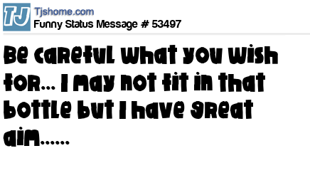 X says Be careful what you wish for... I may not fit in that bottle but I have great aim......