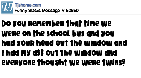 X Do you remember that time we were on the school bus and you had your head out the window and I had my a$$ out the window and everyone thought we were twins?