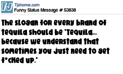 X The slogan for every brand of tequila should be "Tequila... because we understand that sometimes you just need to get f*cked up."