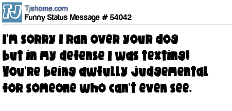 - # 70567 I'm sorry I ran over your dog but in my defense I was texting! You're being awfully judgemental for a blind man