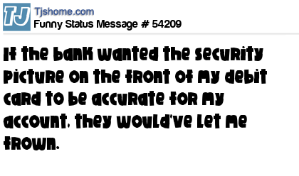 X If the bank wanted the security picture on the front of my debit card to be accurate for my account, they would've let me frown.
