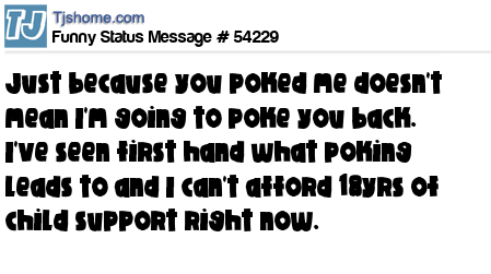 X is Just because you poked me doesn't mean I'm going to poke you back. I've seen first hand what poking leads to and I can't afford 18yrs of child support right now.