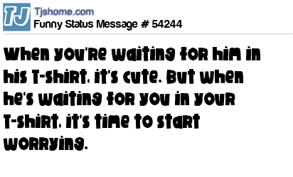 X is When you're waiting for him in his T-shirt, it's cute. But when he's waiting for you in your T-shirt, it's time to start worrying.