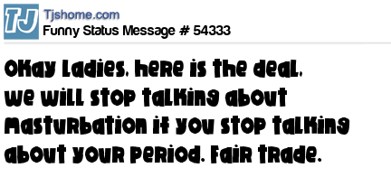 X is Okay ladies, here is the deal, we will stop talking about masturbation if you stop talking about your period. Fair trade.