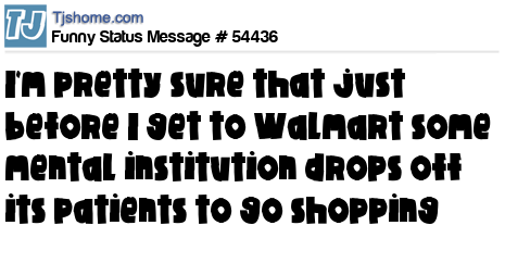 X says I'm pretty sure that just before I get to Walmart some mental institution drops off its patients to go shopping