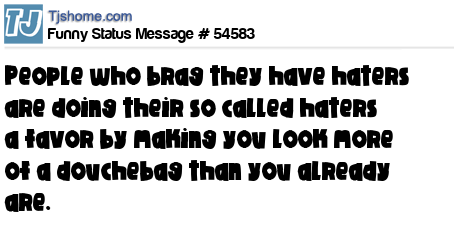 X People who brag they have haters are doing their so called haters a favor by making you look more of a douchebag than you already are.
