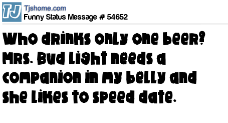 X Who drinks only one beer? Mrs. Bud Light needs a companion in my belly and she likes to speed date.