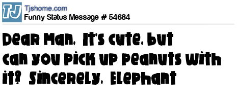 X Dear Man, It's cute, but can you pick up peanuts with it? Sincerely, Elephant