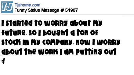 X is I started to worry about my future, so I bought a ton of stock in my company, now I worry about the work I am putting out :/