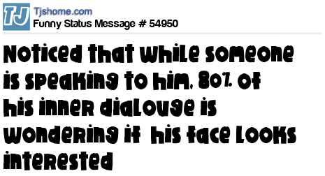 - # 76476 While someone is speaking to me, 80% of my inner dialogue is just wondering if my face looks interested