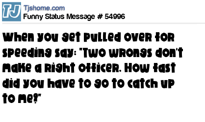 - # 33281 If a police officer stops you for speeding, ask the officer "than how did you catch up with me?"
