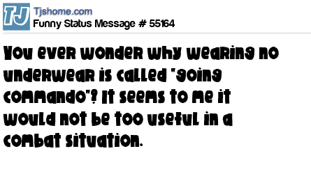 - # 22391 You ever wonder why wearing no underwear is called "going commando"? It seems to me it wouldn't be useful in a combat situation.