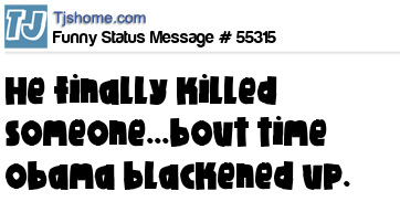 - # 55344 Its official..Obama IS black... he finally killed someone.