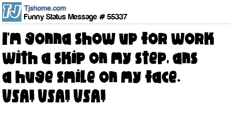 X says I'm gonna show up for work with a skip on my step, ans a huge smile on my face. USA! USA! USA!