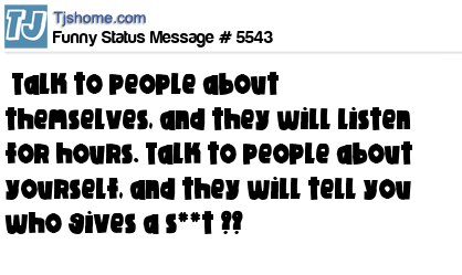 X says Talk to people about themselves, and they will listen for hours. Talk to people about yourself, and they will tell you who gives a s**t ??