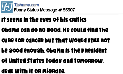 X is It seems in the eyes of his critics, Obama can do no good. He could find the cure for cancer but that would still not be good enough. Obama is the president of United States today and tomorrow, deal with it or migrate.