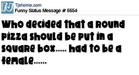 X says who decided that a round pizza should be put in a square box..... had to be a female......