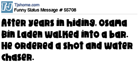 X After years in hiding, Osama Bin Laden walked into a bar. He ordered a shot and water chaser.