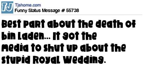 X says Best part about the death of bin Laden... It got the media to shut up about the stupid Royal Wedding.