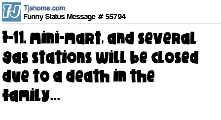 - # 55821 7-eleven, mini-marts, and several gas stations will be closed this week due to a death in the family...